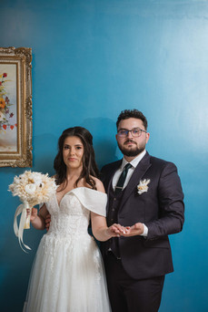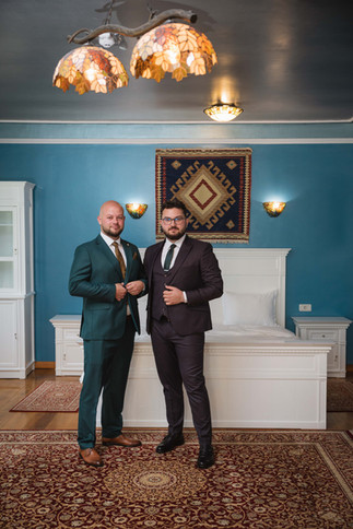 Pregătirile au avut loc la Conacul Polizu, un loc nobil, unde istoria și rafinamentul se împletesc firesc cu eleganța modernă. Atmosfera era calmă, aproape cinematică — fiecare detaliu respira emoția începutului unei povești ce avea să dureze o viață, doar ei și nașii, într-un cadru restrâns, dar plin de sens.